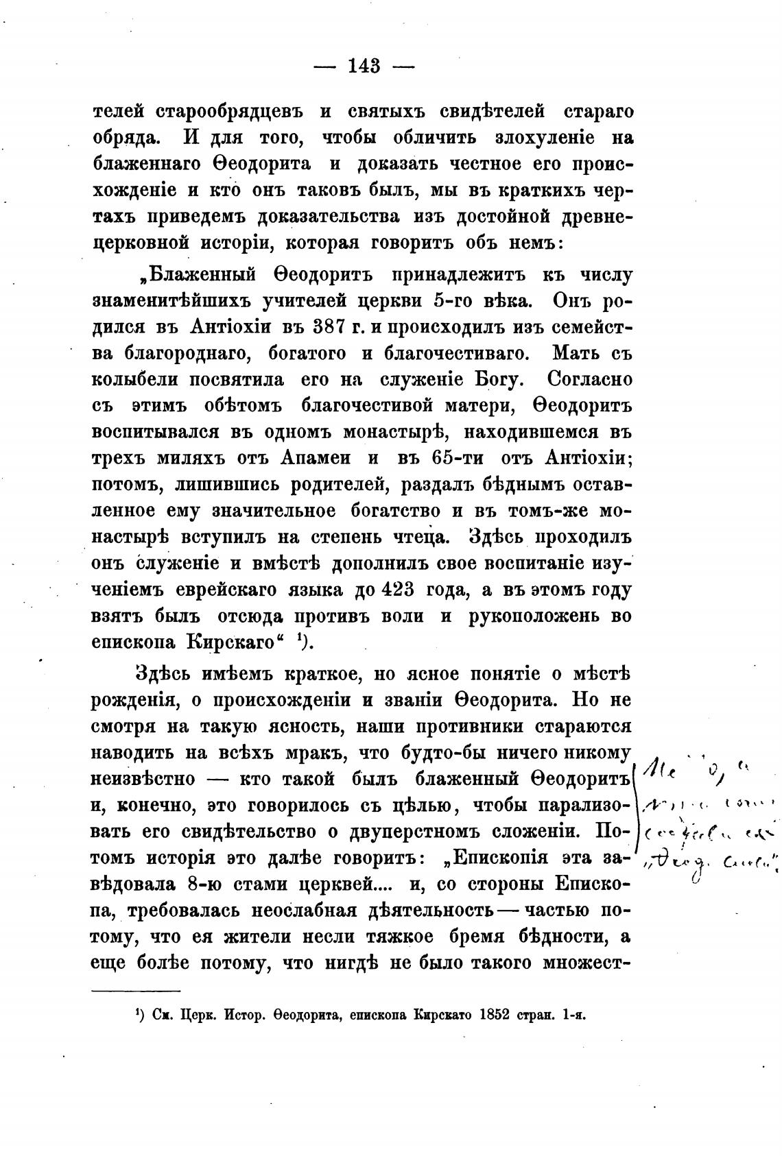 1) (Ж Церк. Истор. беодорита, епископа Кирсвато 1852 стран. 1-я.