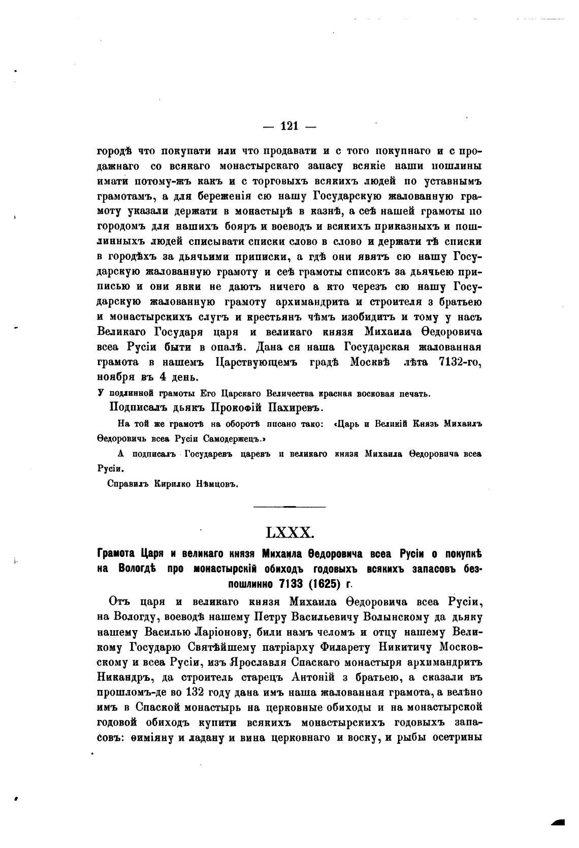 Подписадъ дьякъ Пахиревъ.