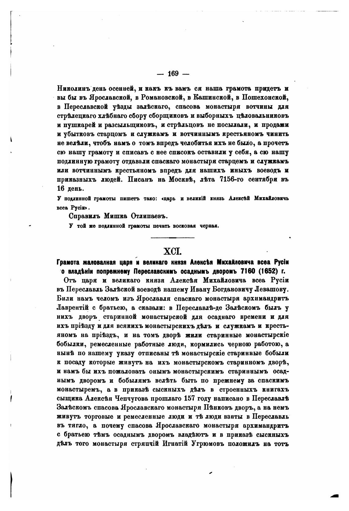 •о влад%н1и попрежнеиу Переславски•ъ осцныиъ двороиъ 710 (1652) г.