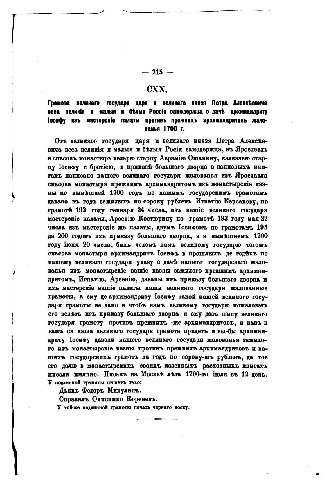 Грамота великаго государя царя и великаго князя Петра Алекс•евича