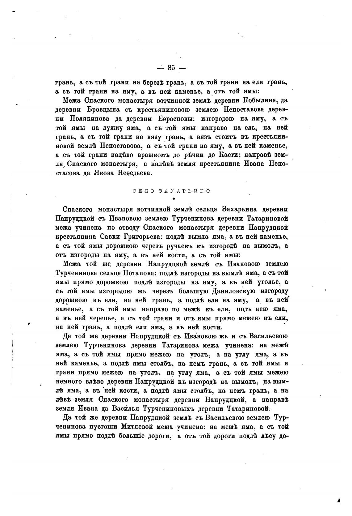Спаского монастыря вотчинной земд'Ь сельца Захарьина деревни