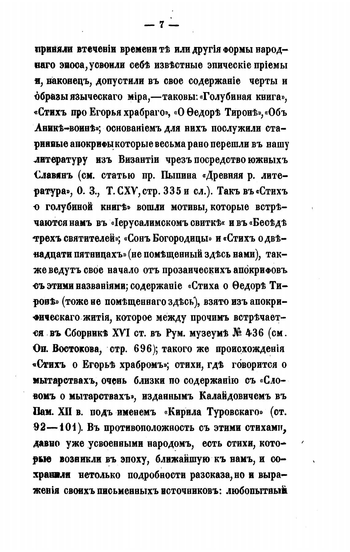 «Стихъ про Егорья храбраго», «О ТиронЈ», «Обь