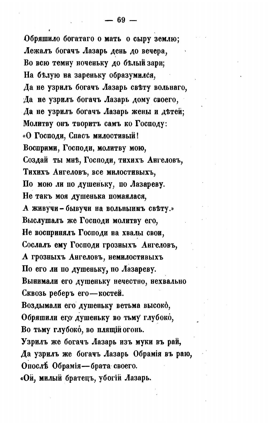 Лежалъ богачъ Лазарь день до вечера,