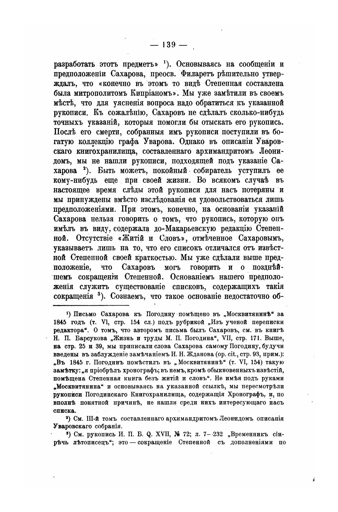 1) Письмо Сахарова кь Погодину пом%щено въ за