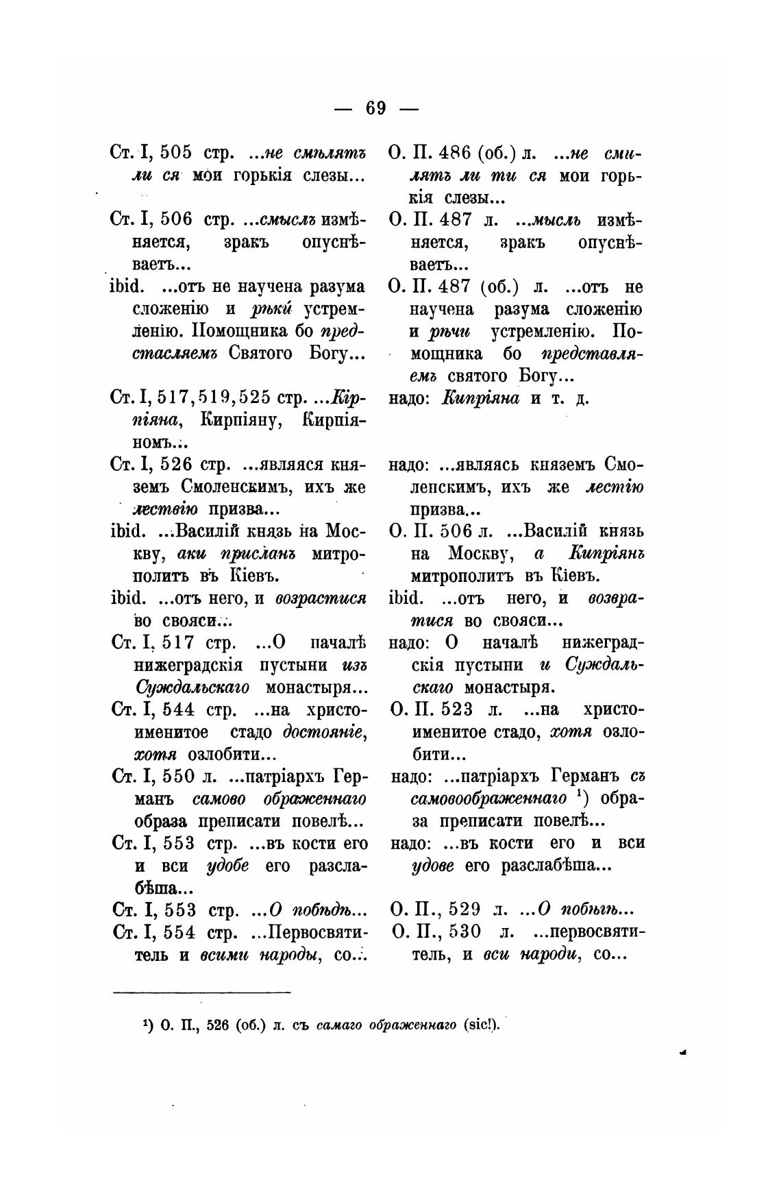 1) О. П., 526 (об.) л. съ самаго ображеннаго (sic!).
