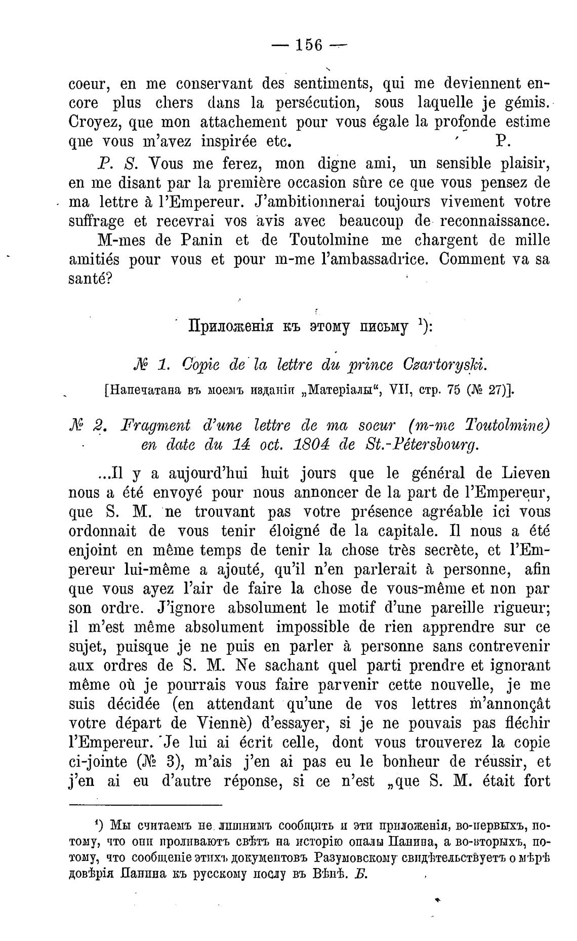 Лб 1. Copie de [а lettre du prince Czartoryski.