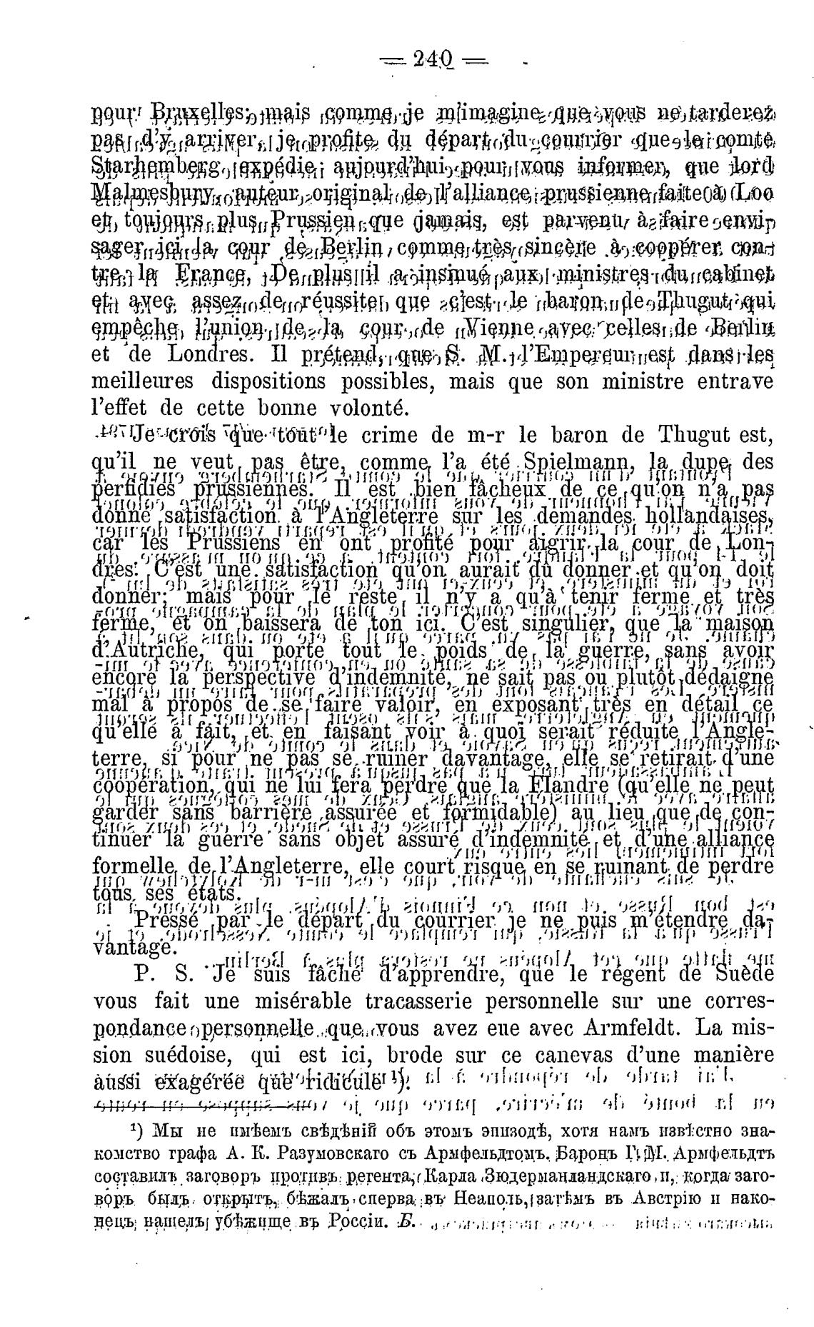 pondance avez еие avec Armfeldt. La mis-