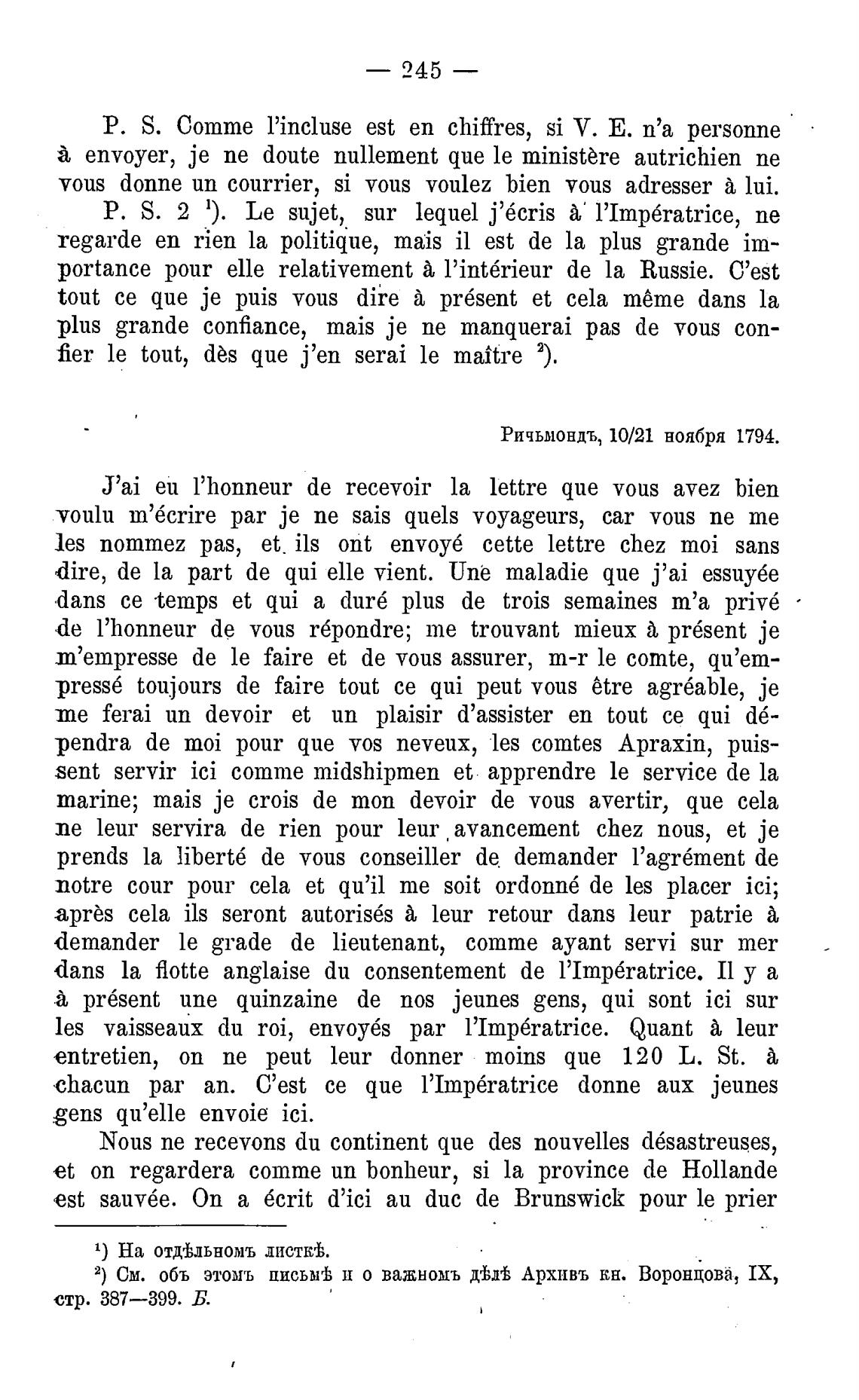 2) См. объ этомъ письмг% II о важномъ Архивъ кн.