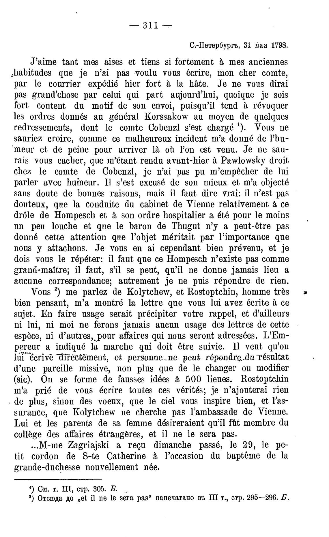 С.-Петербургъ, 31 йая 1798.