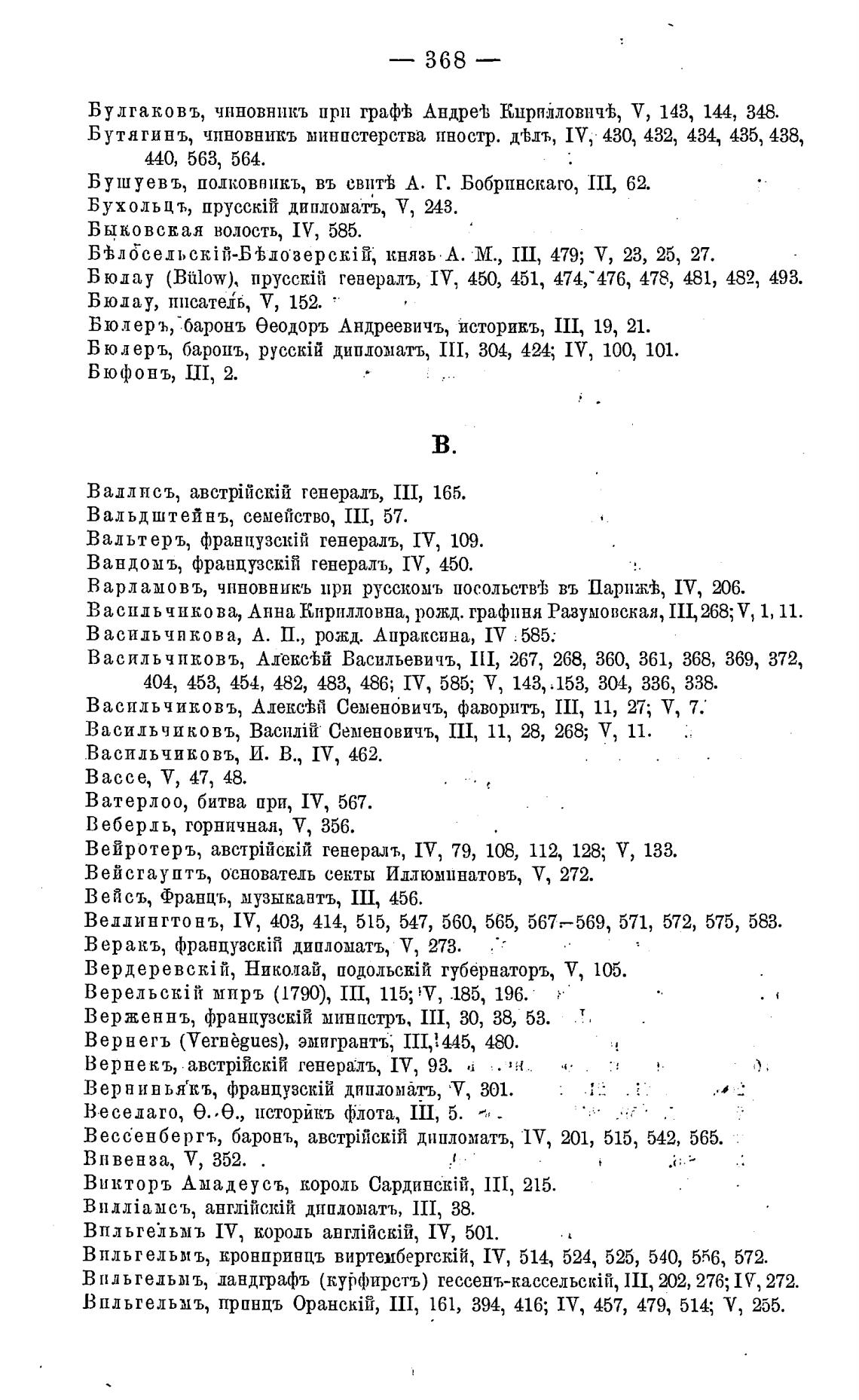 Васильчиковъ, Baclui1* Семеновичъ, III, 11, 28, 268; У, 11.