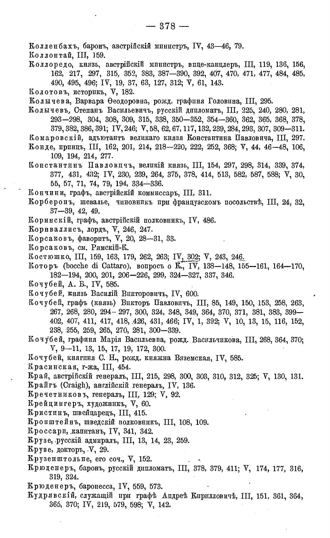 Кочубей, графъ (князь) Впкторъ Павловичъ, П1, 85, 149, 150, 153, 263,