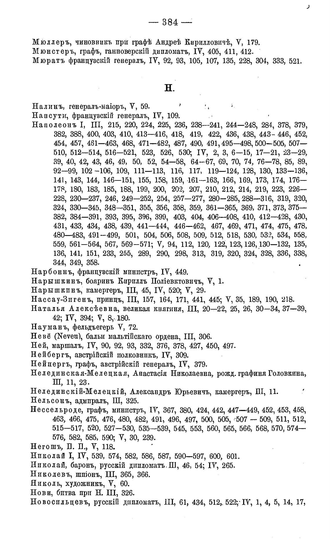 Ней, маршалъ, IV, 90, 92, 93, 332, 376, 378, 427, 450, 497.