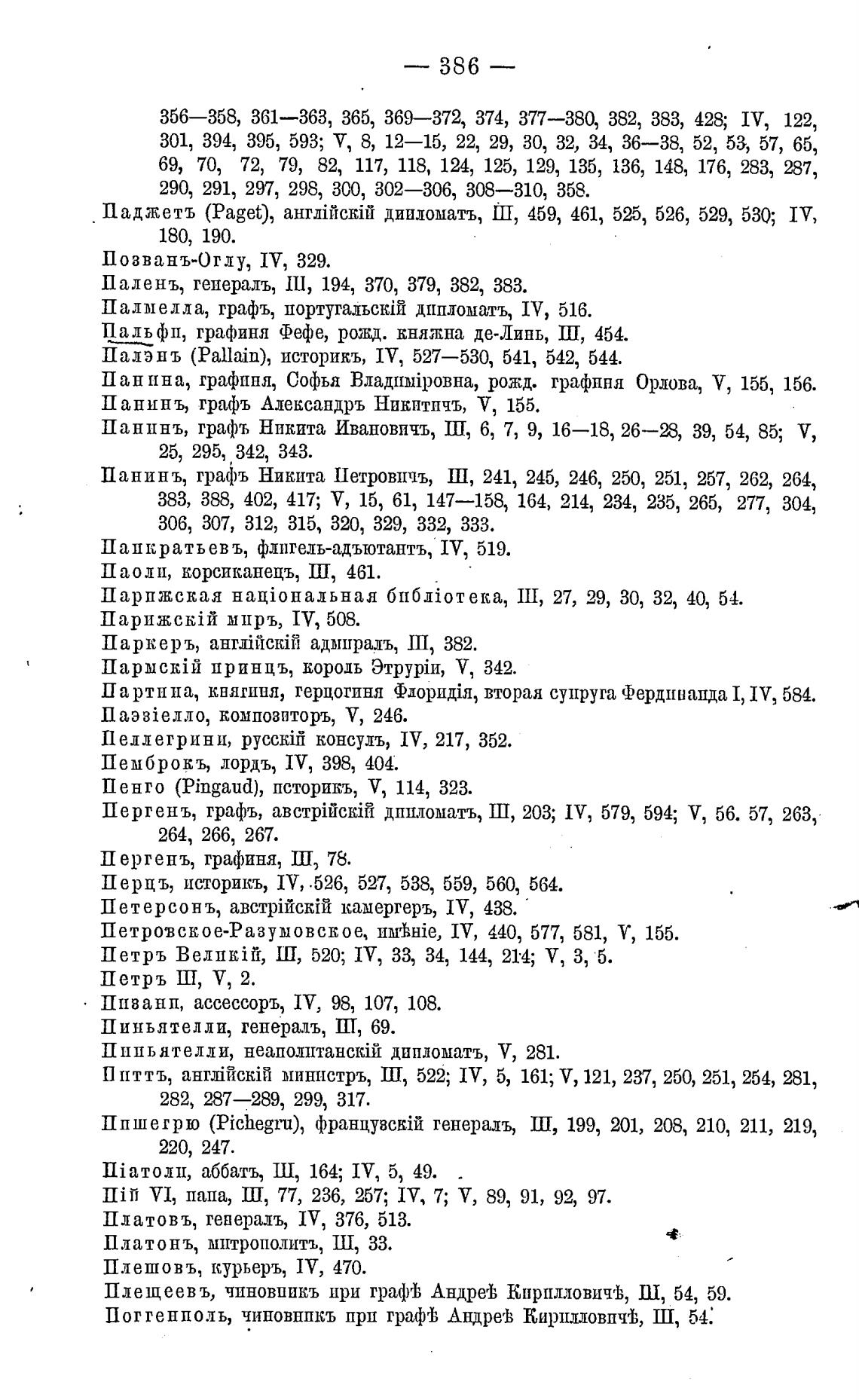 Пергенъ, графъ, дппломатъ, Ш, 2()3; IV, 579, 594; У, 56. 57, 263,