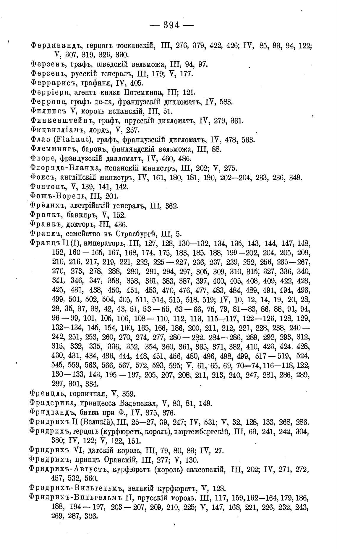 Финкенштейнъ, графъ, прусстй дипломатъ, IV, 279, 361.