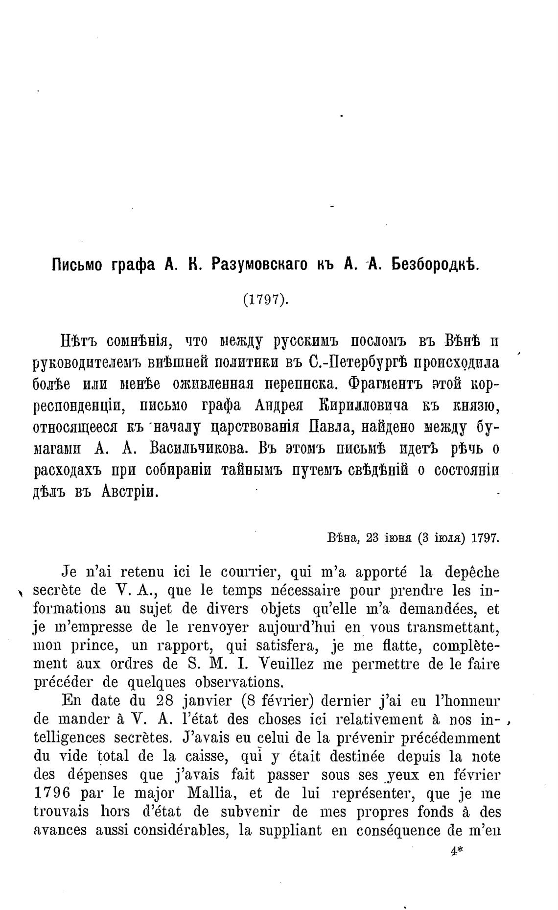Письмо графа А. Н. Разумовскаго кь А. А. Безбородк%.