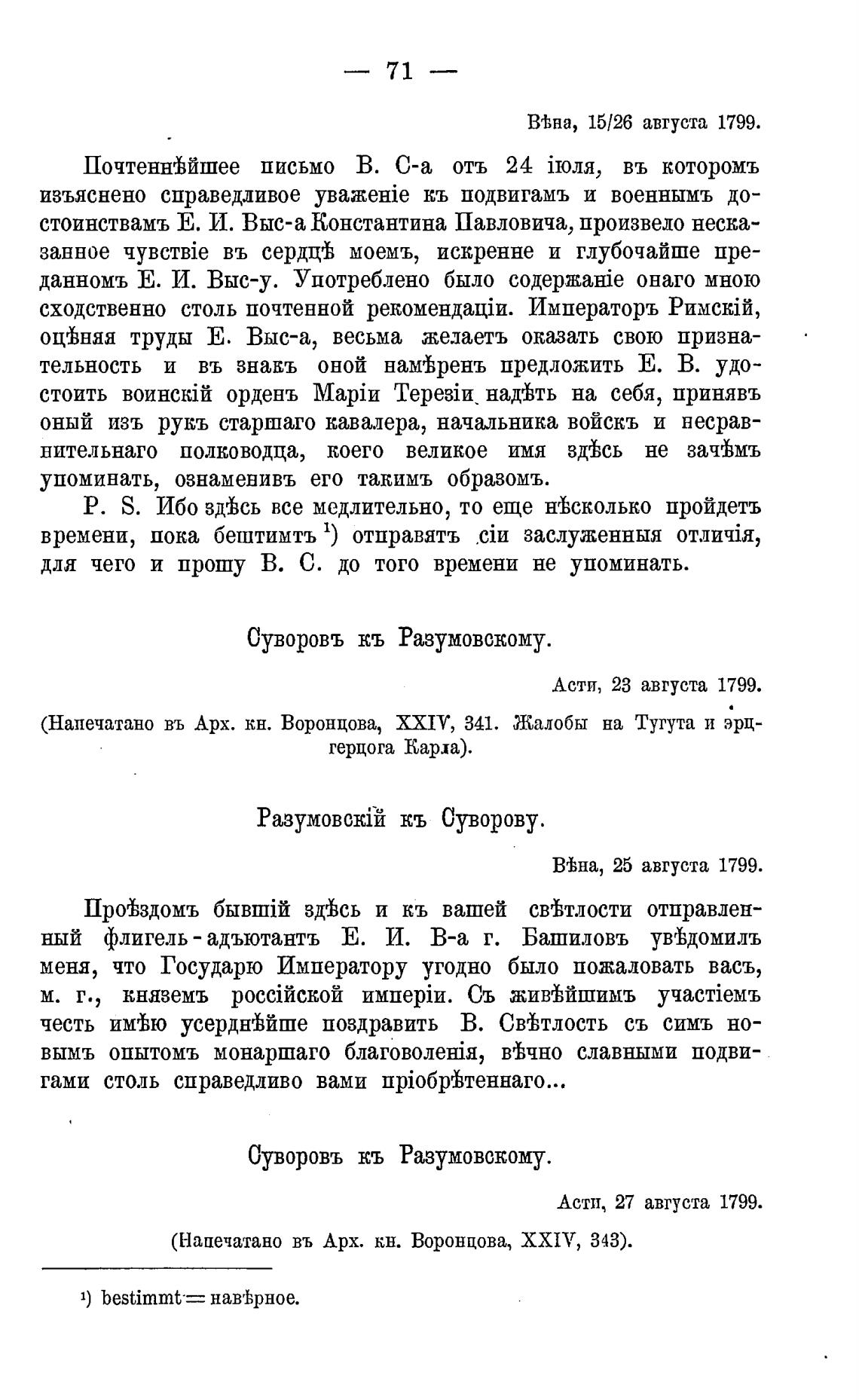 В'Ьна, 15/26 августа 1799.