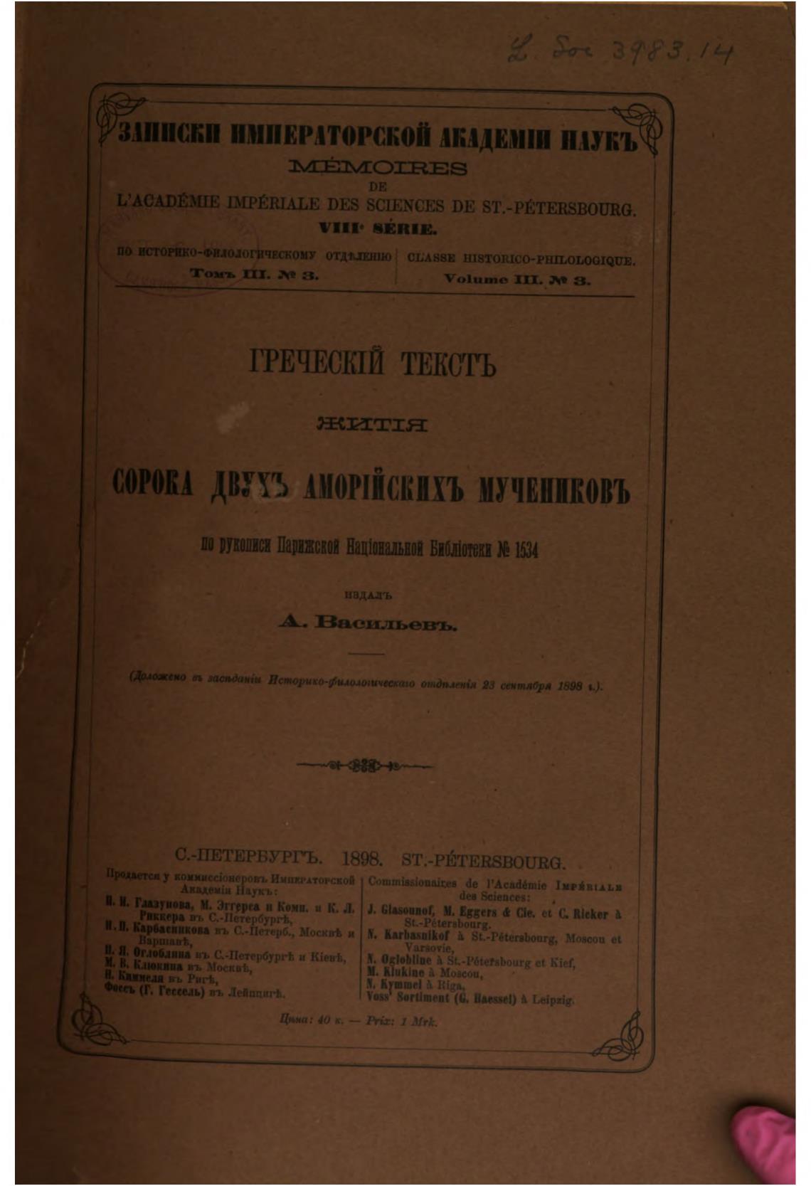 ИАСАГ)ЁМГЕ ПГРЁШЛЬЕ DES SCIENCES ПЕ ST.-PETERSBOURG.
