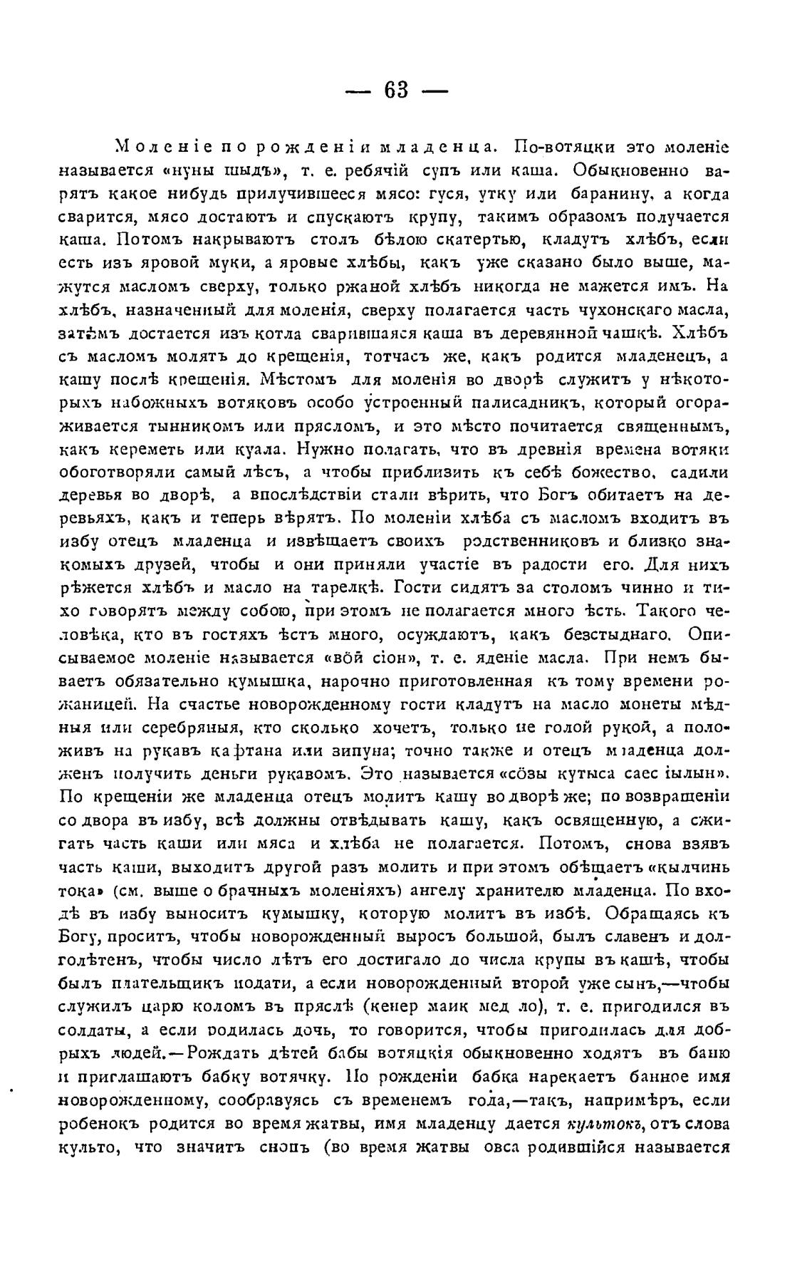 рыхъ людей.— Рождать д±тей бабы вотяц:ия обыкновенно ходятъ въ баню