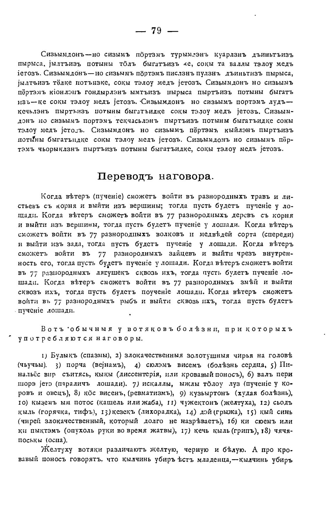 ровъ и овецъ), 8) кос висенъ, (ревматизмъ), 9) кузьыртонъ (худая бол±знь),