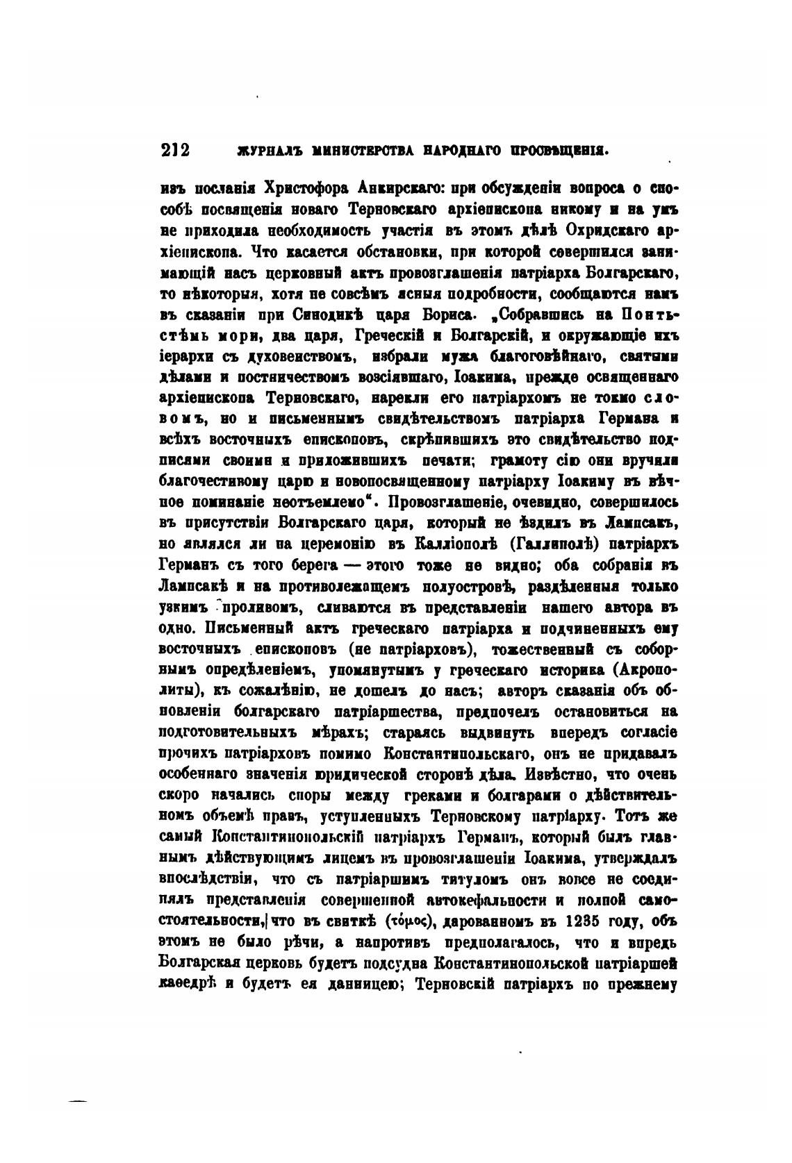 болгараго naTpiapmecTBa, предпочиъ остановитьи на