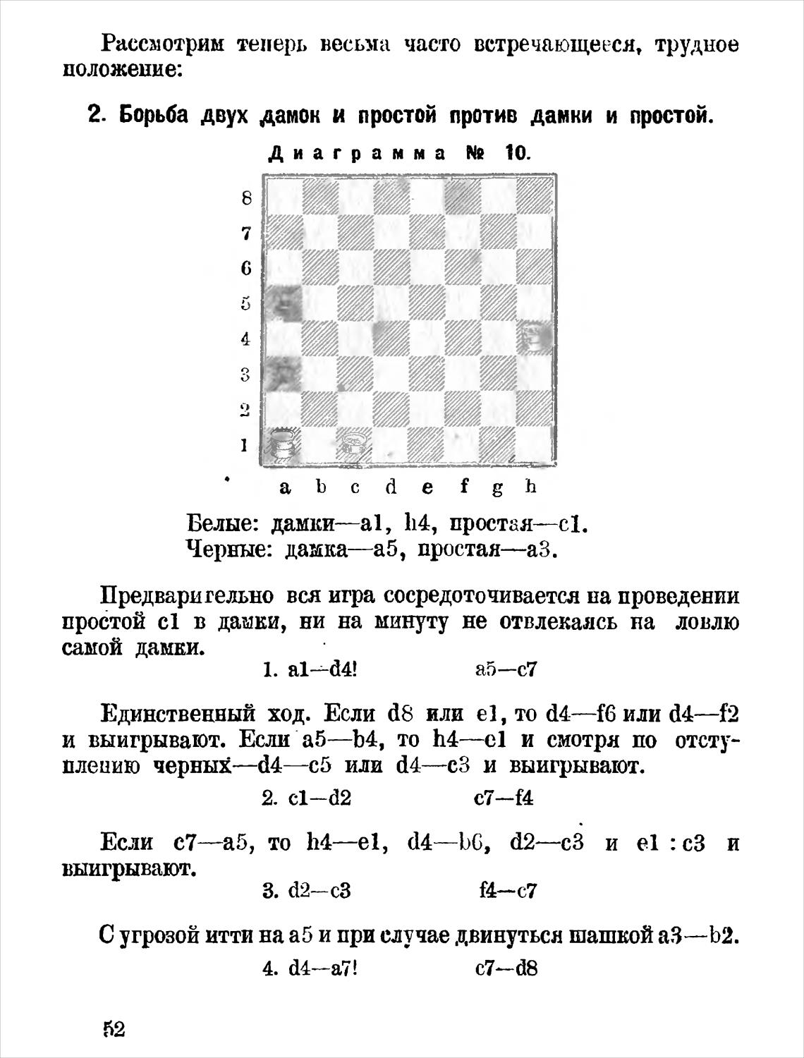 2. Борьба двух дамок и простой против дамки и простой.