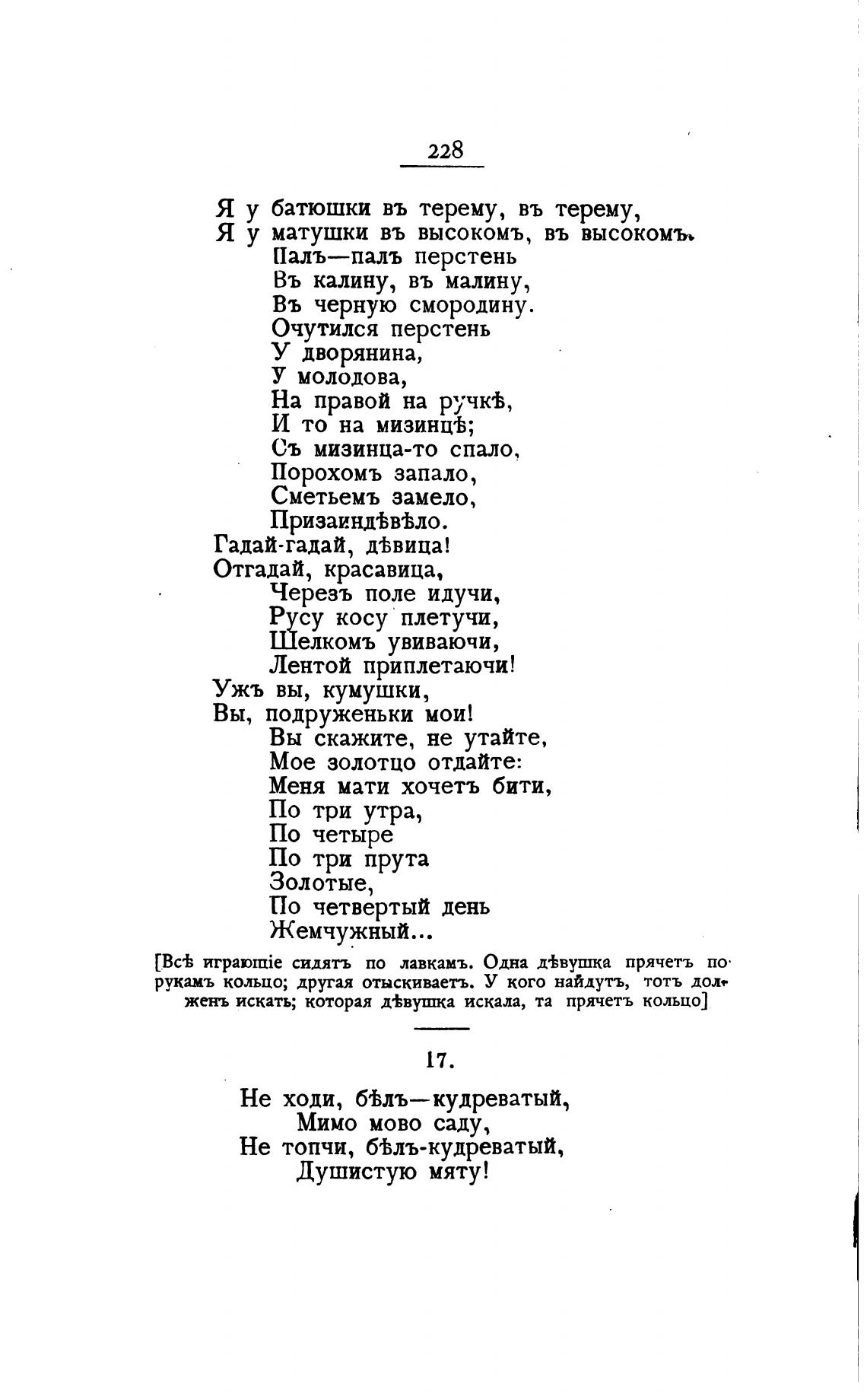 рукамъ кольцо; другая отыскиваетъ. У кого найдусь, тотъ долг