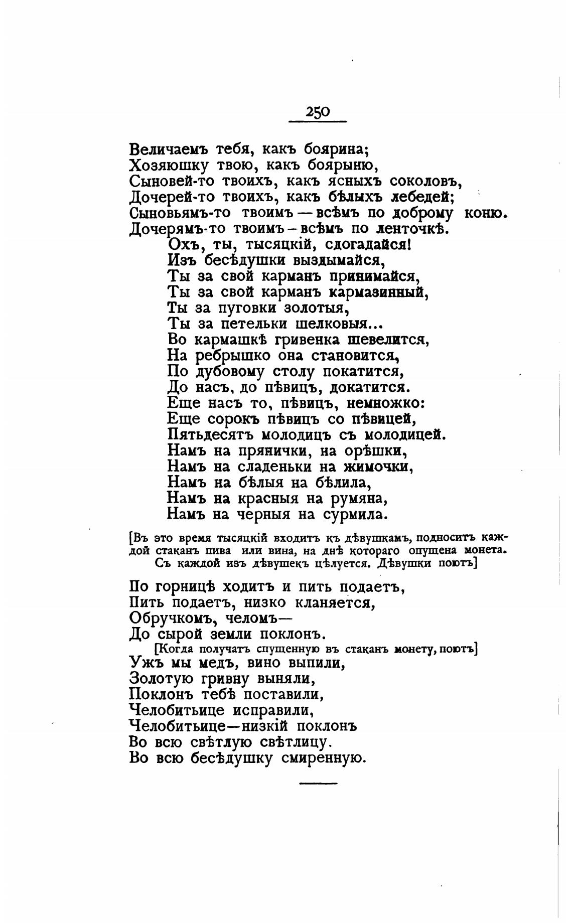[Когда получать спущенную въ стаканъ монету, поютъ]