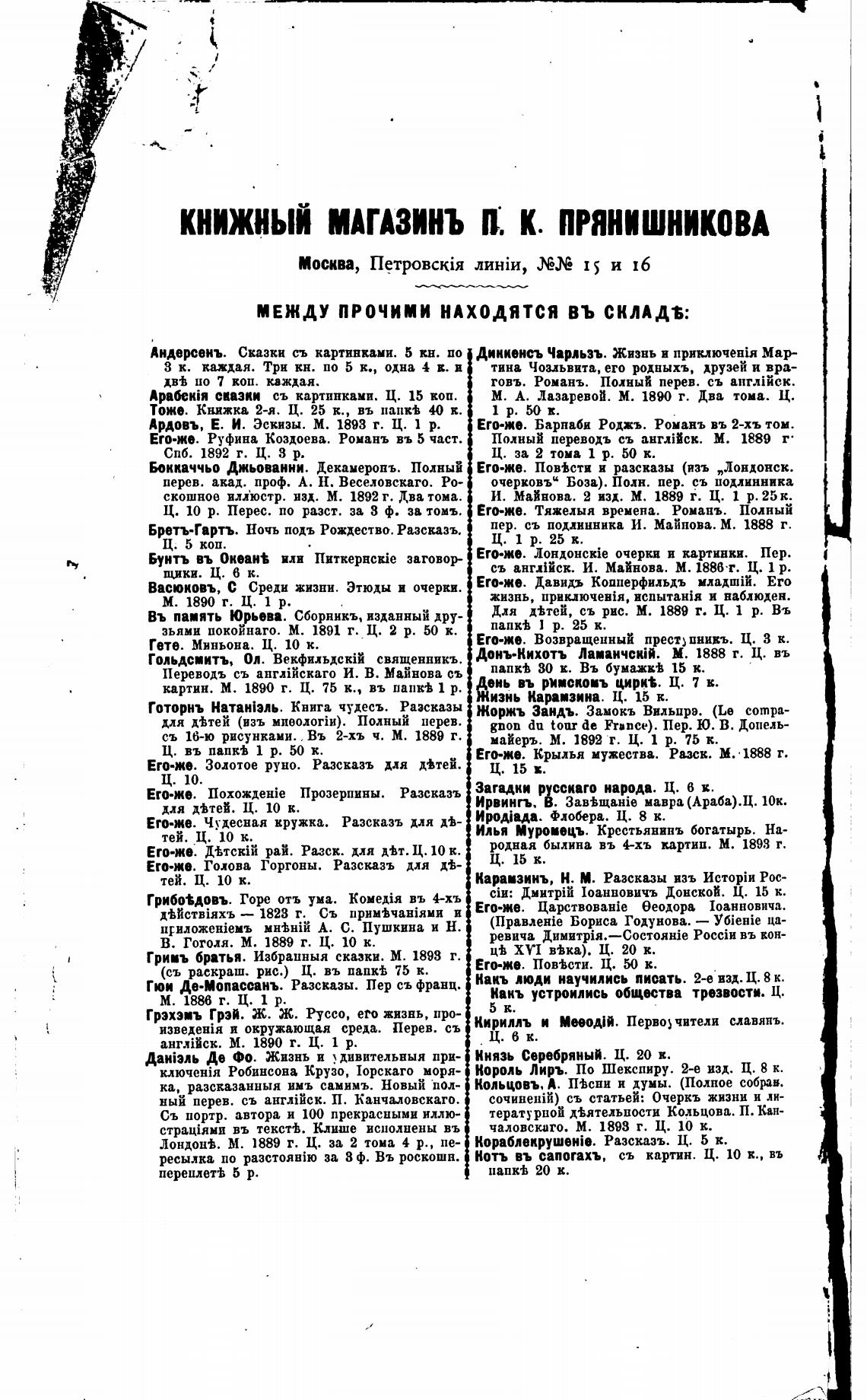 книжныи мапзинъ в. к. ПРЯНИШНИКОВА
