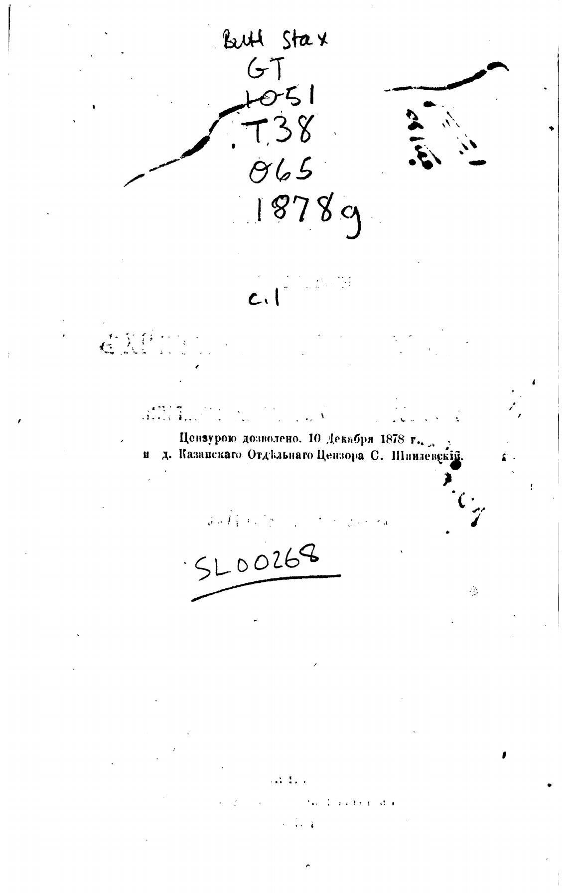 Цензурою дозволено. 10 Декабря 1878 г..