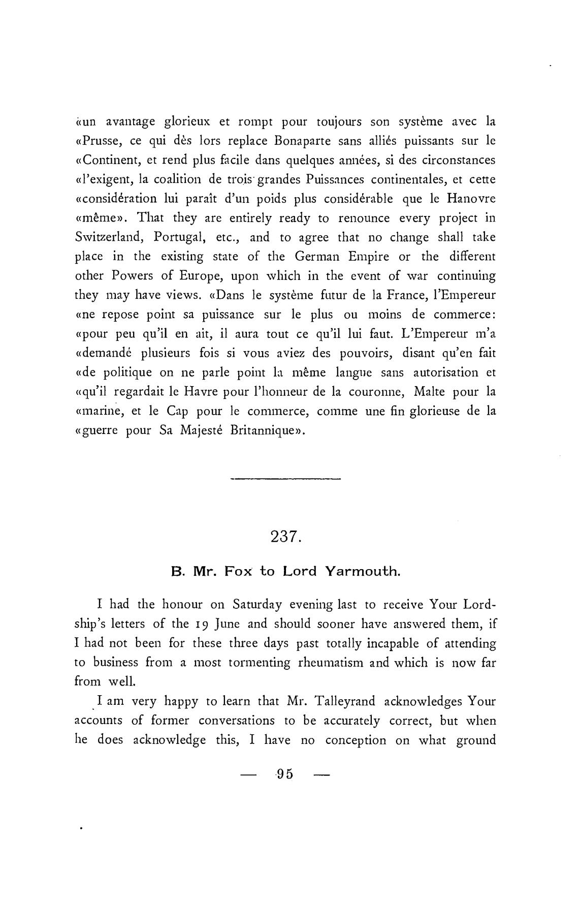 В. Mr. Fox to Lord Yarmouth.