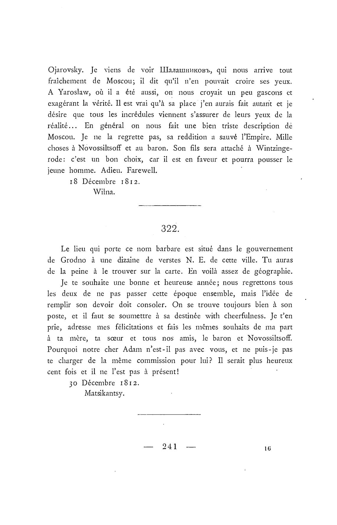 ta тёте, ta et tous nos amis, le baron et Novossiltsof.