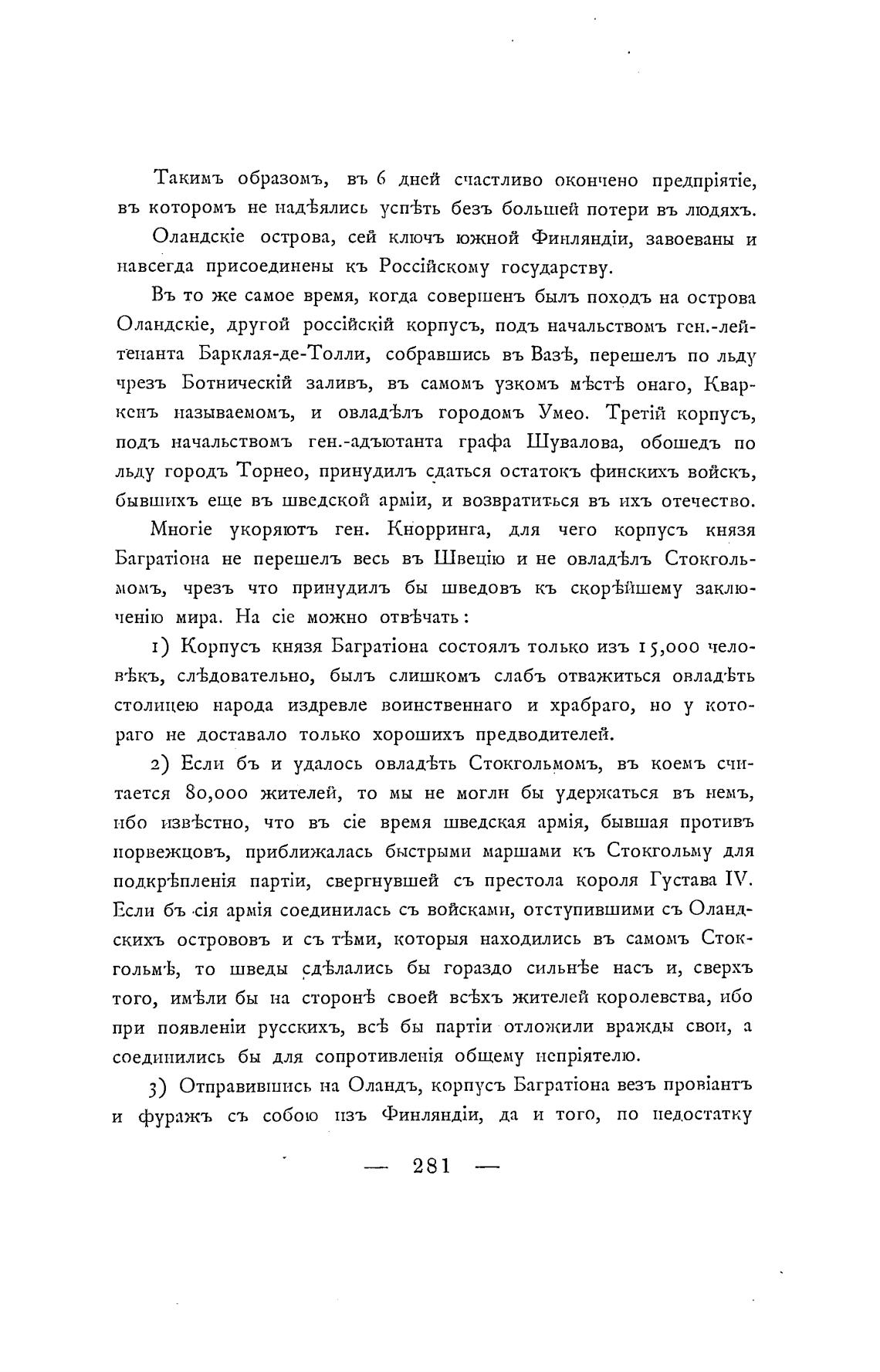 3) Отправившись на Оландъ, корпусъ BarpaTi0Ha везъ
