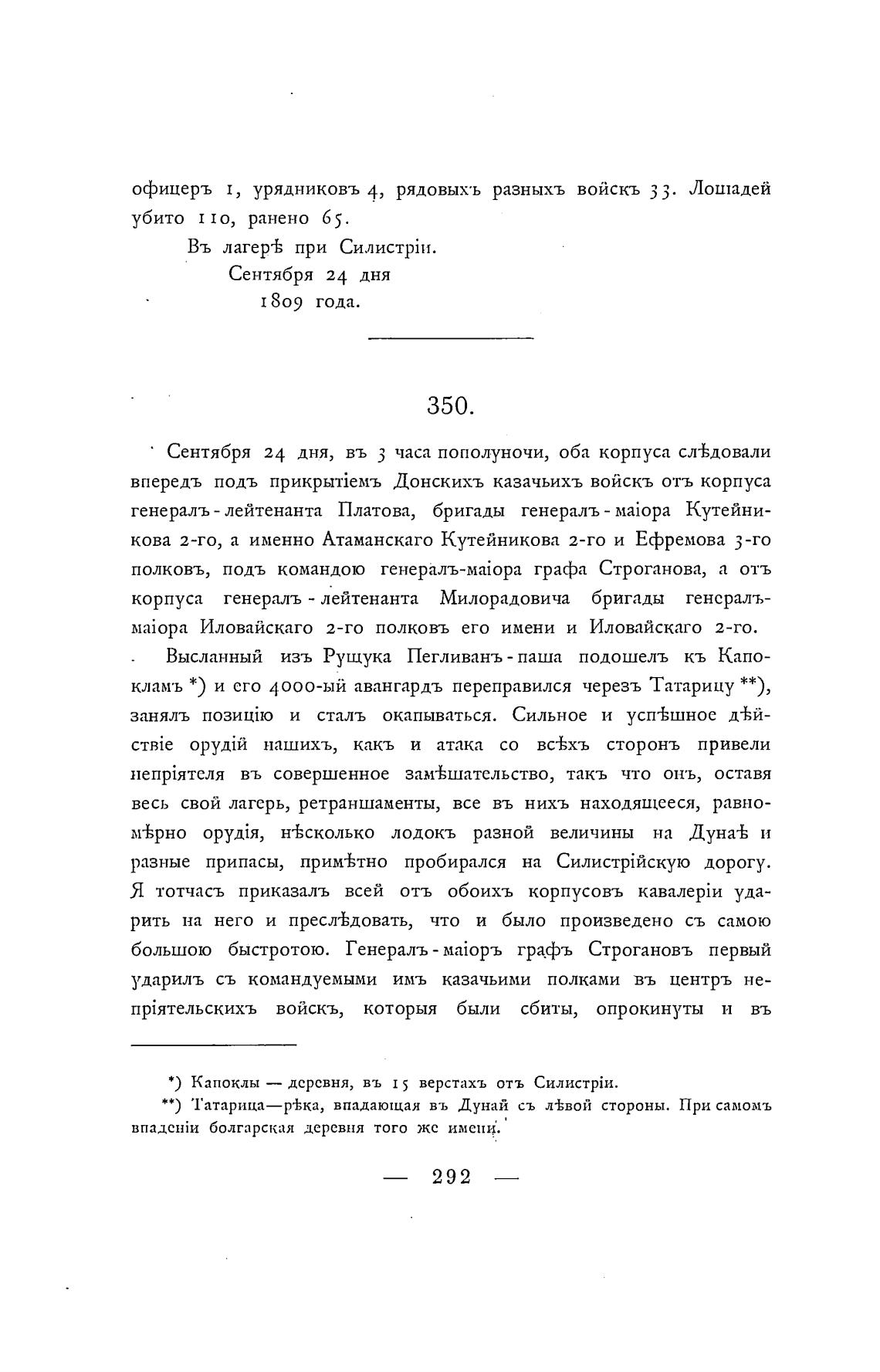 кламъ * ) и его 4000-ый авангардъ переправился черезъ Татарицу **),