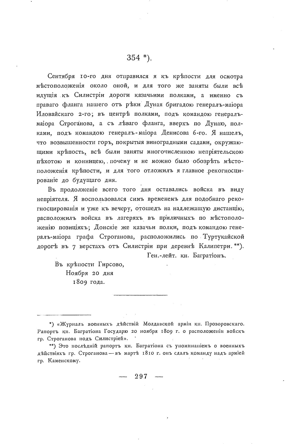 **) Это рапортљ кн. ст, упомина1йе,мъ о военныхъ