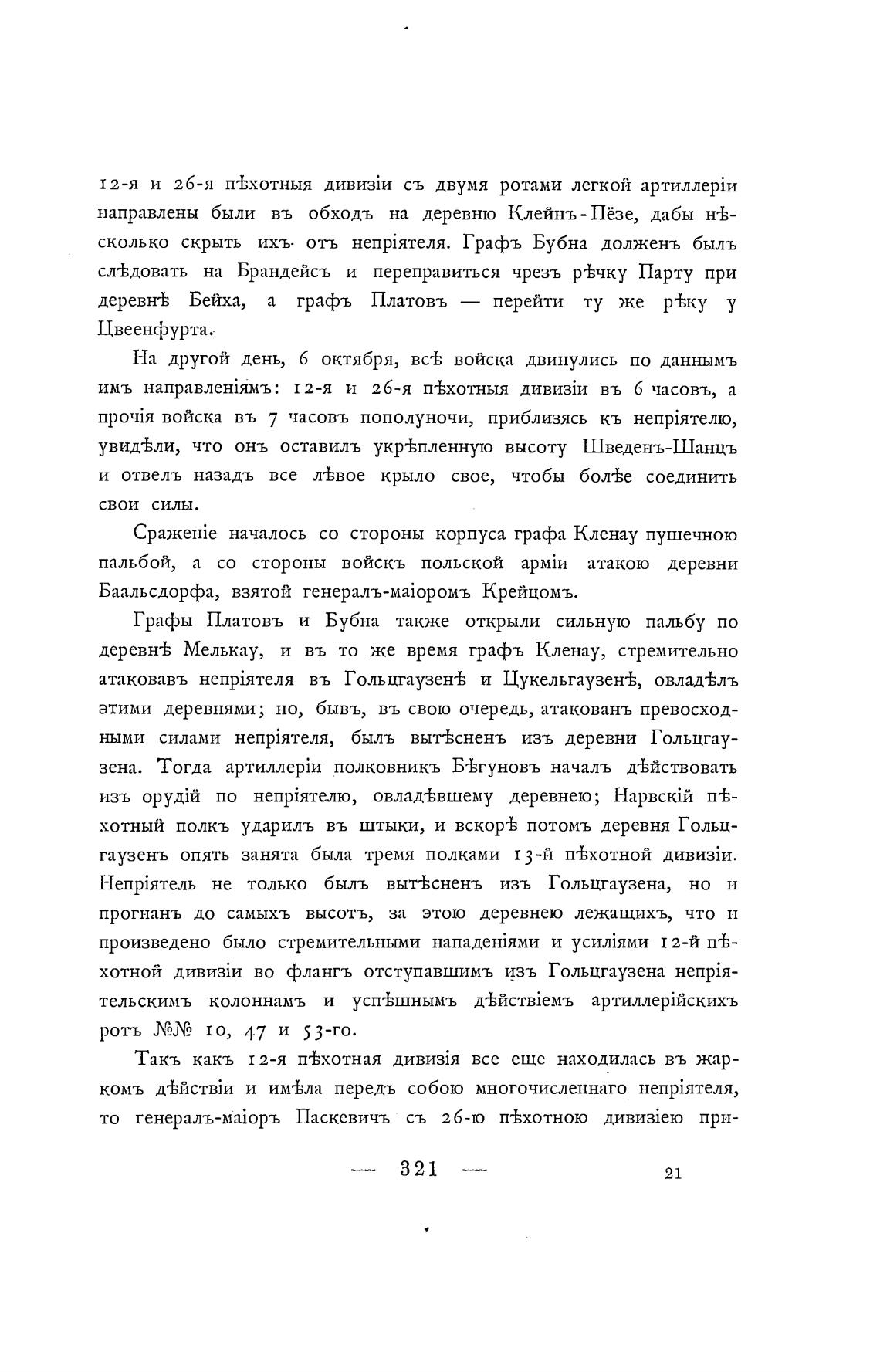 ными силами быль выт±сненъ изъ деревни Гольцгау-