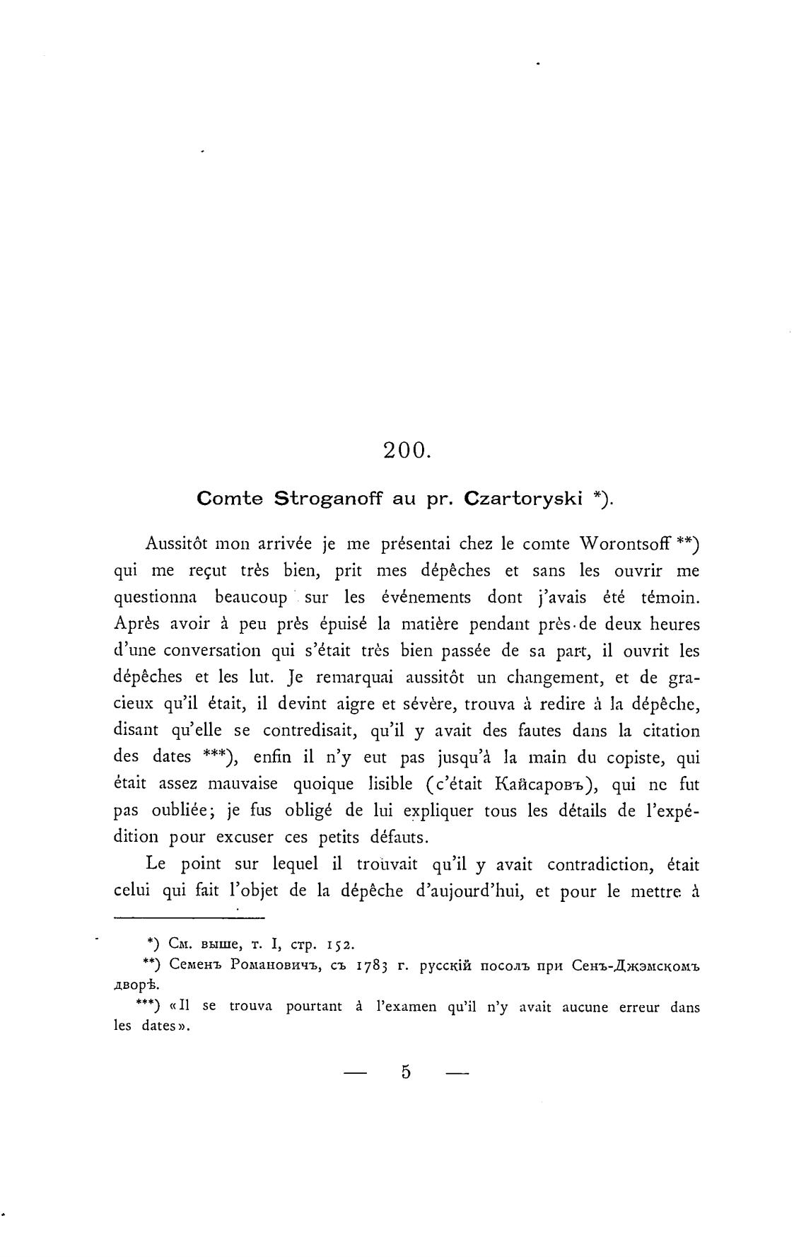 Comte Stroganoff аи pr. Czartoryski *).