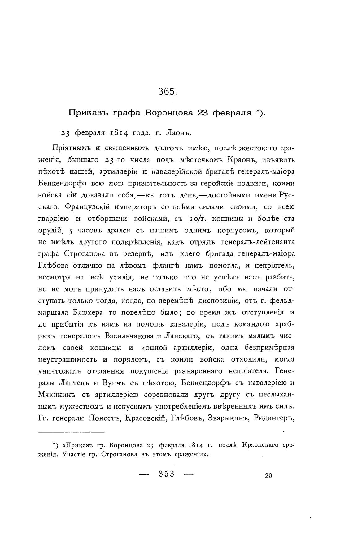 * ) «Приказъ гр. Воронцова 23 февраля 18I4 г. посл± Краонскаго сра-