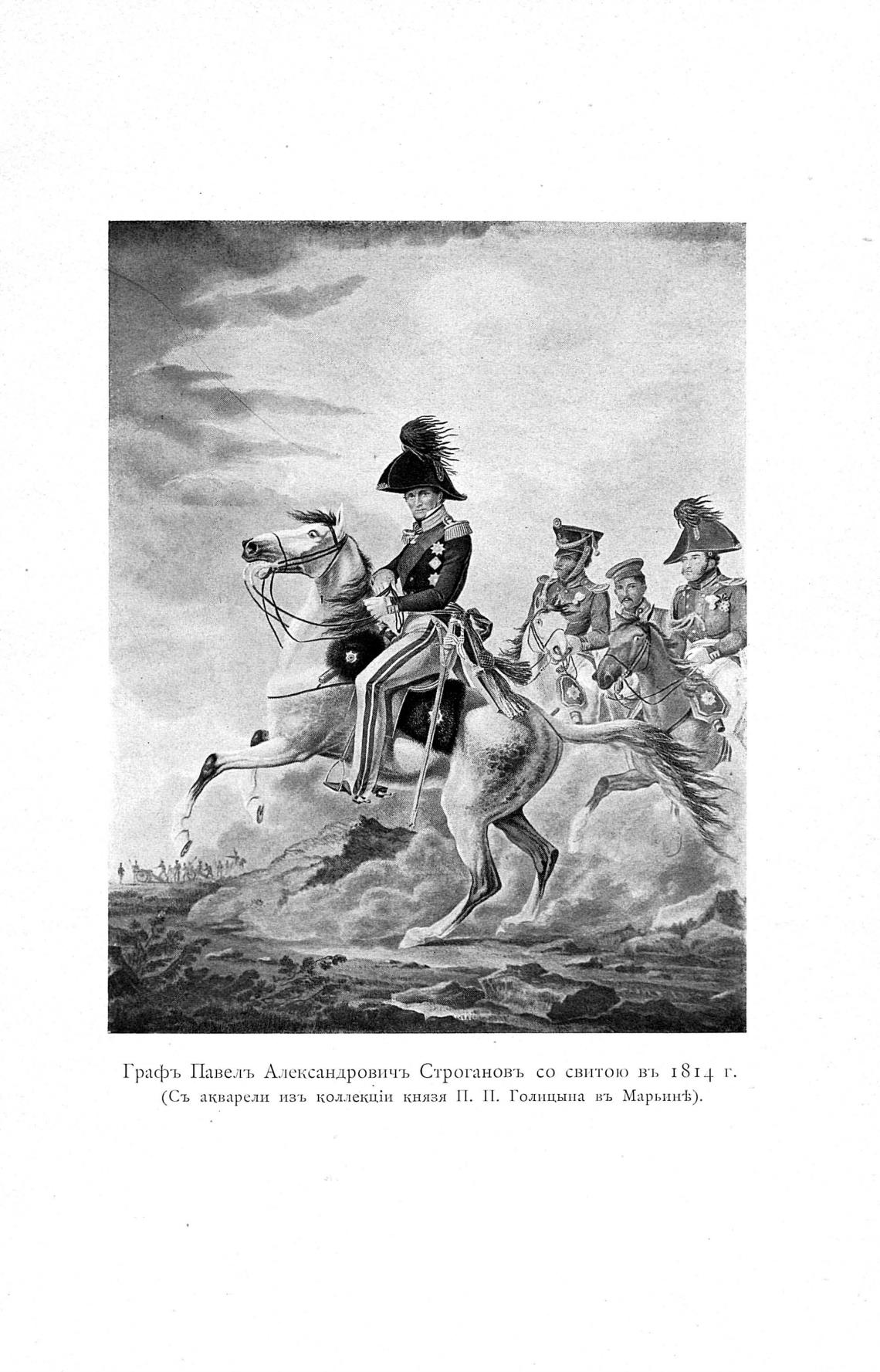 Графъ Павель Александровичъ Строгановъ со свитою въ 1814 г.