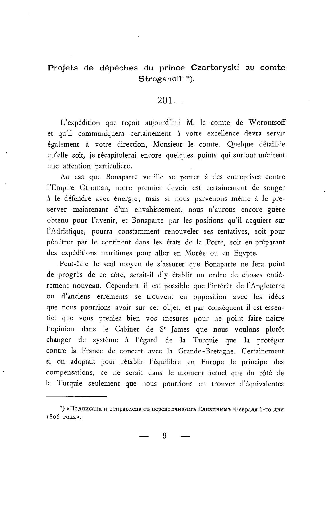 Projets de d6p6ches du prince Czartoryski аи comte
