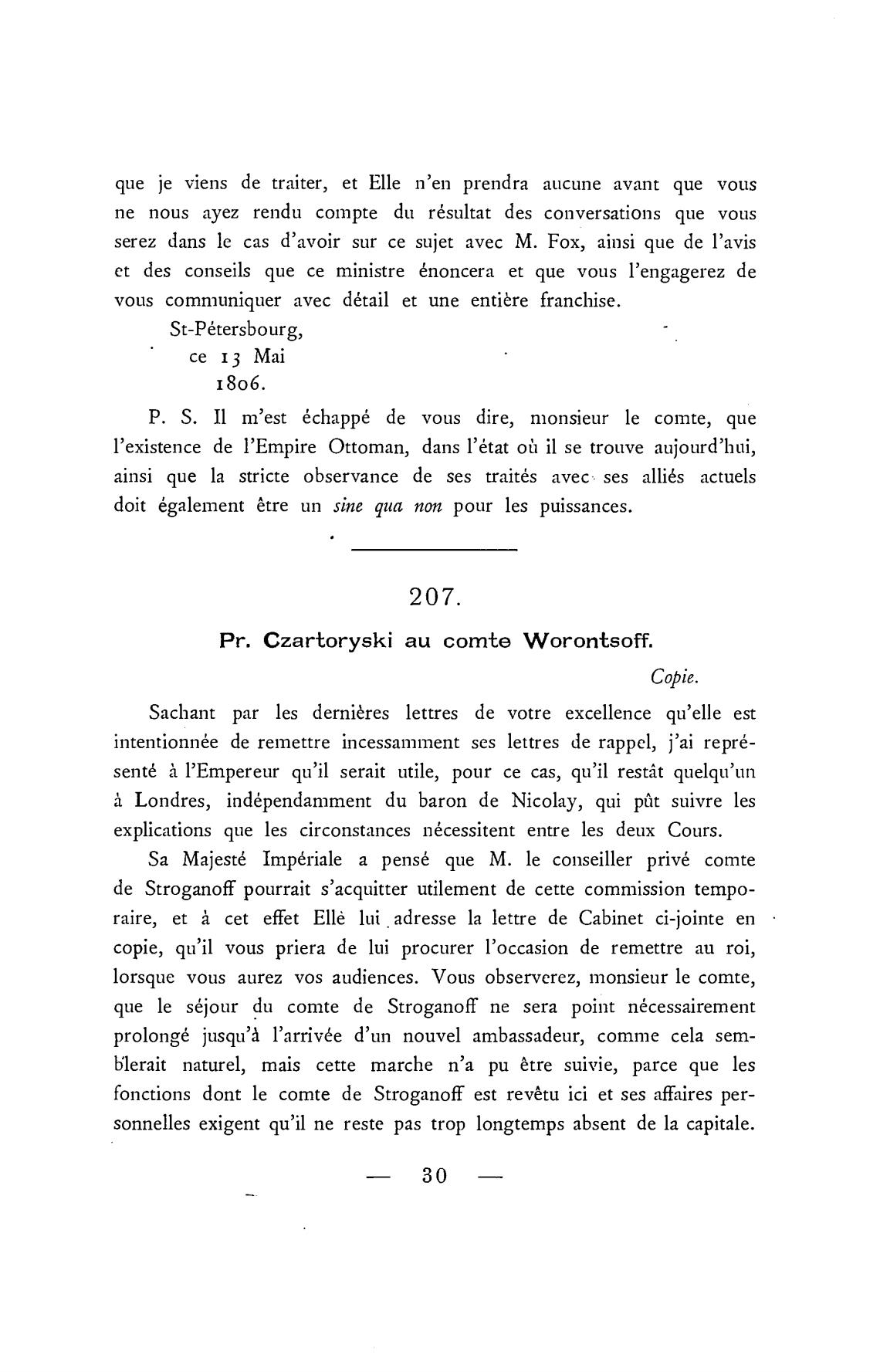 РС. Czartoryski аи comte Worontsoff.