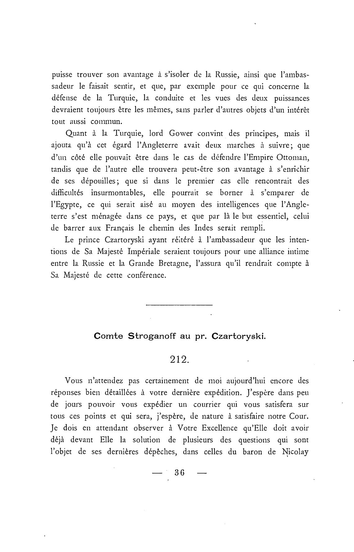 Comte Stroganoff аи pr. Czartoryski.