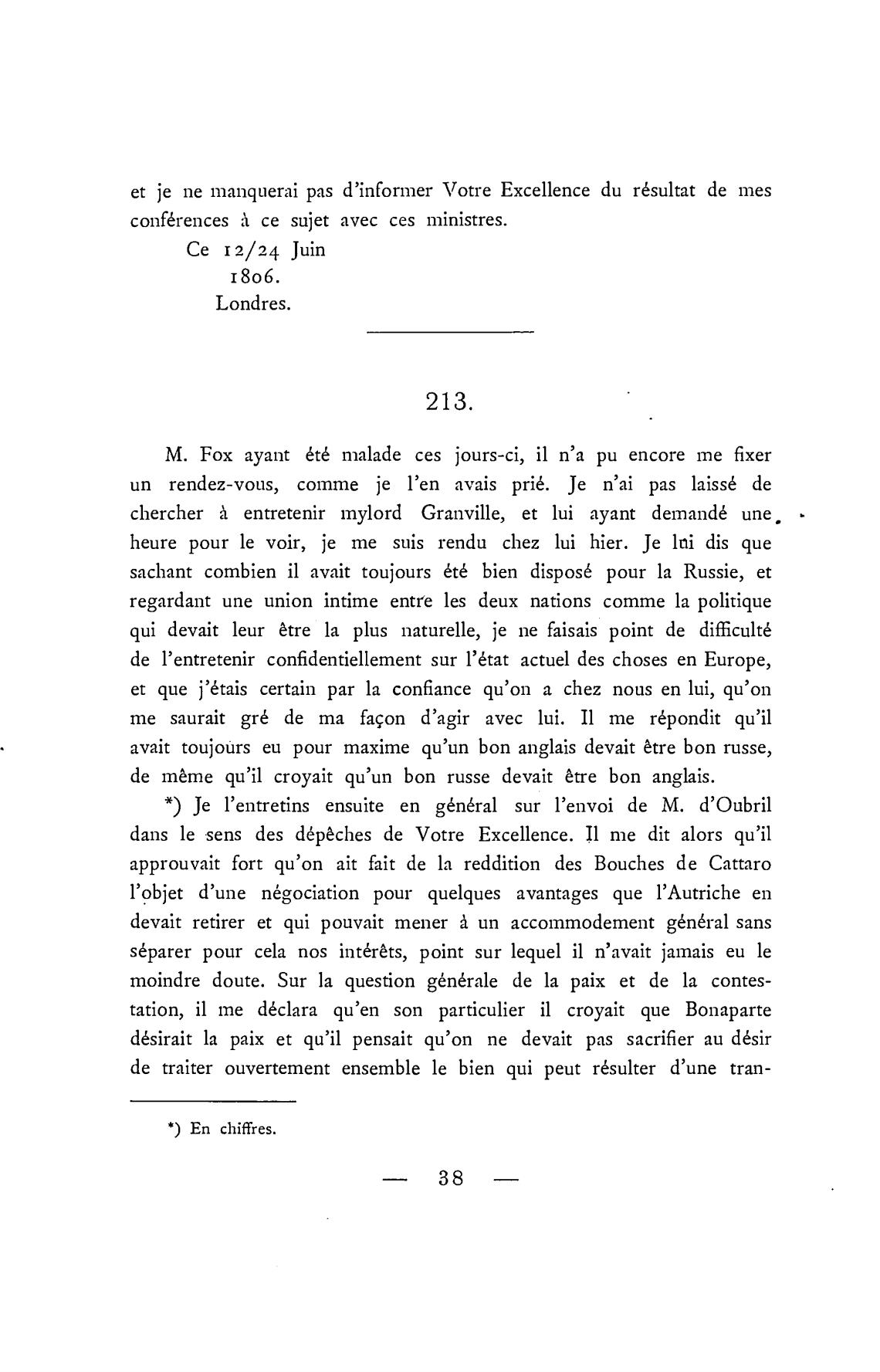 * ) је l'entretins ensuite еп g6n6ral sur l'envoi de М. d'Oubril