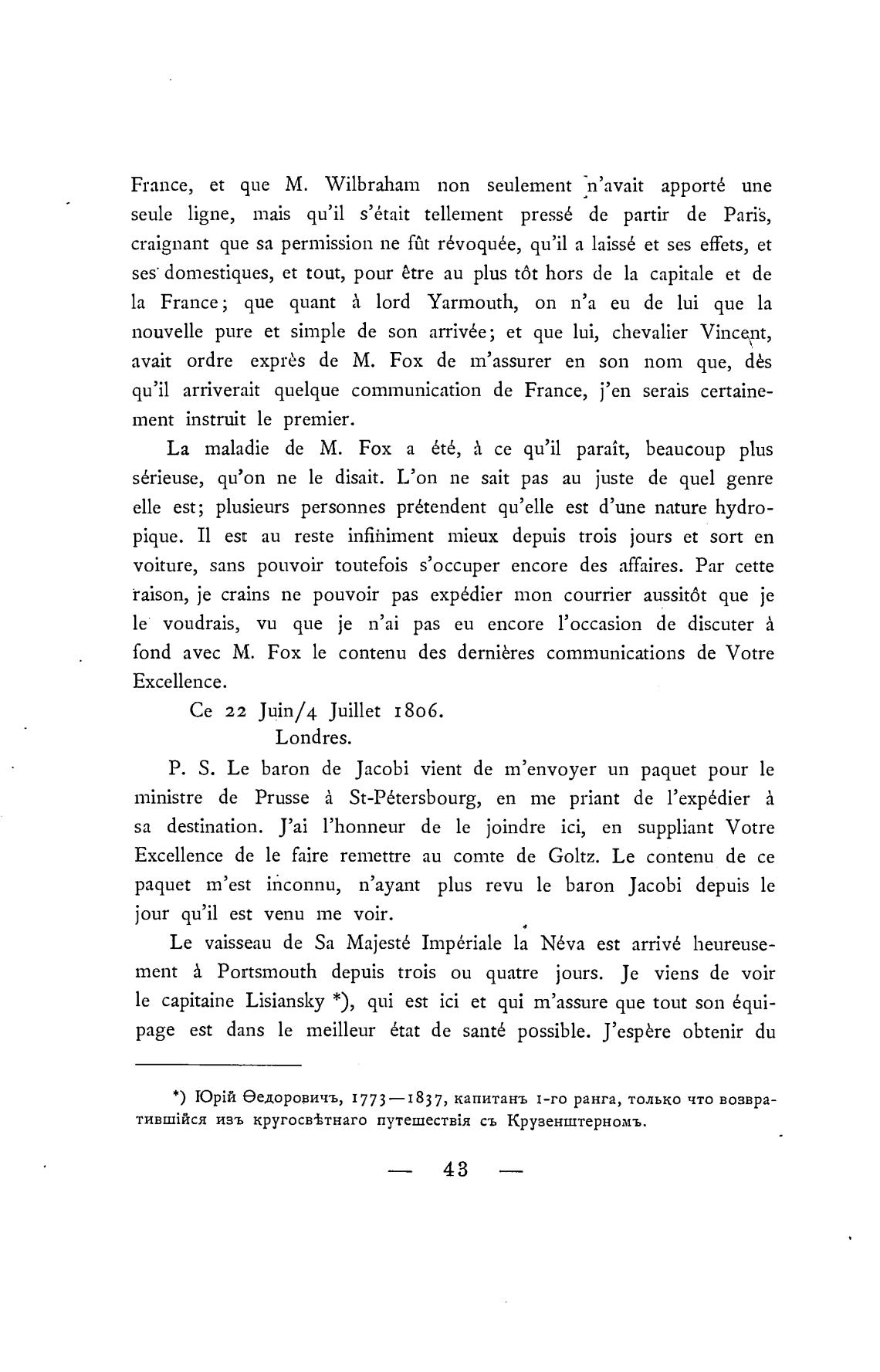 Се 22 Juin/4 Juillet 1806.