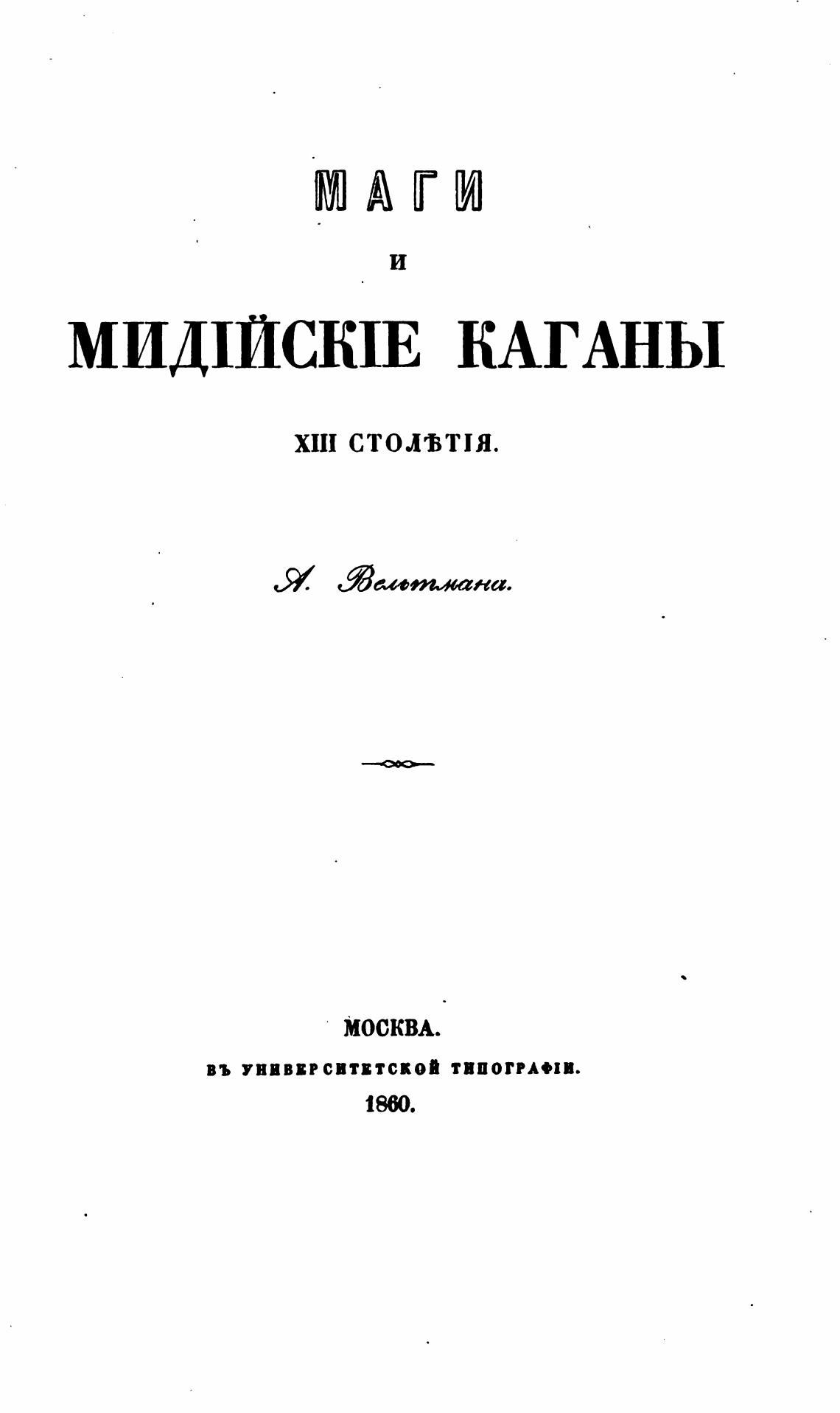 Маги и Мидийские каганы XIII столетия. - Вельтман А. Ф.