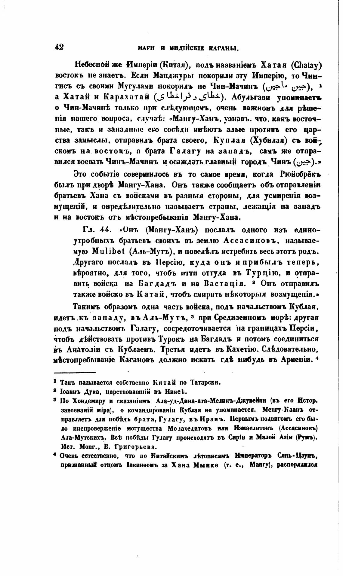 Гл. 44. «Онъ (Мангу-Ханъ) послалъ одного изъ едино—