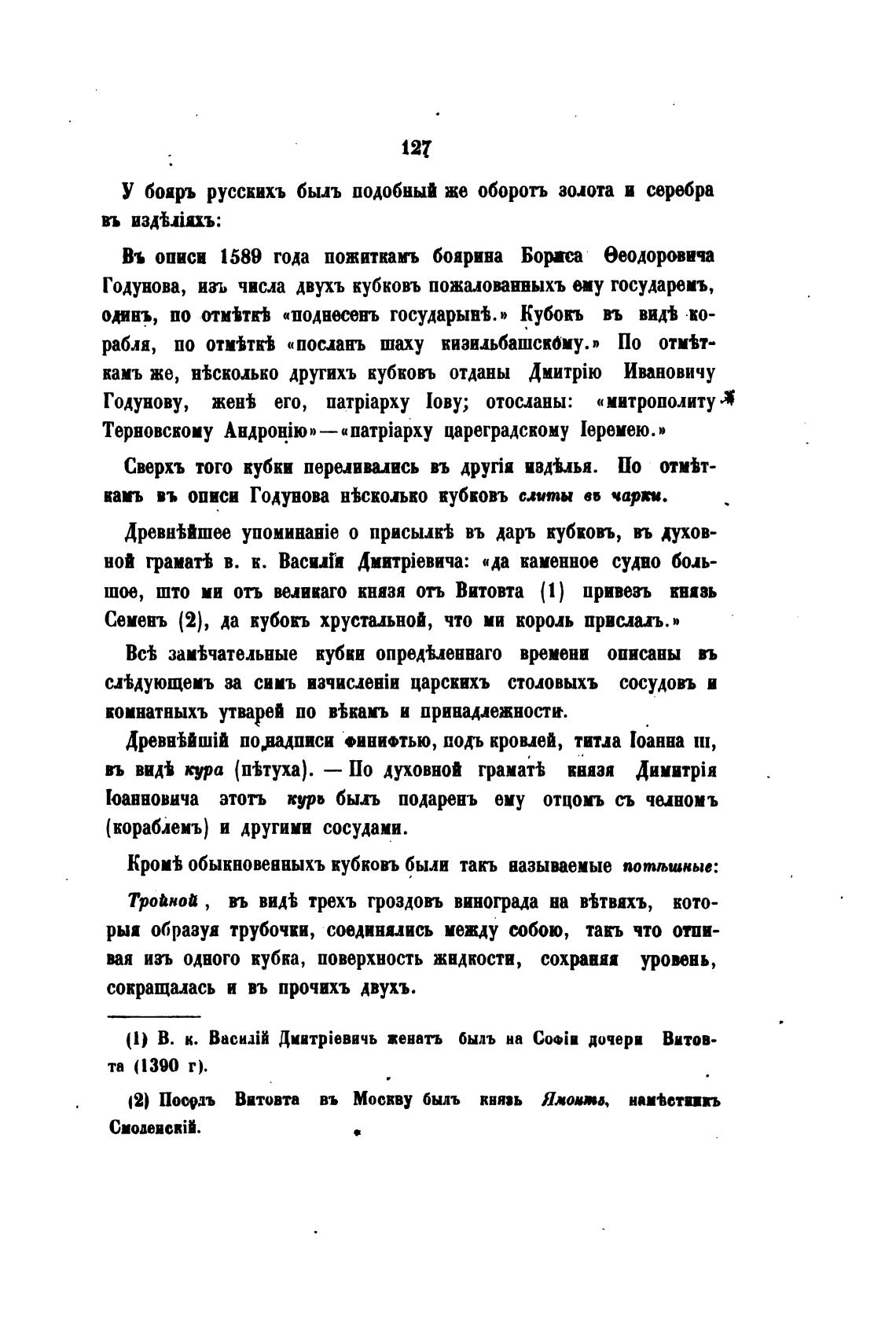 Годунова, ио числа двухъ кубковъ пожалоинныхъ ему государеиъ,