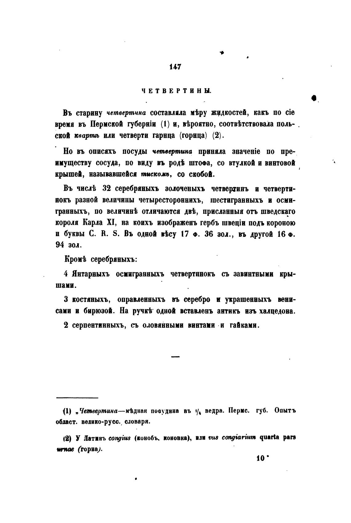 Но въ описихъ посуды четвертина приняла по пре-