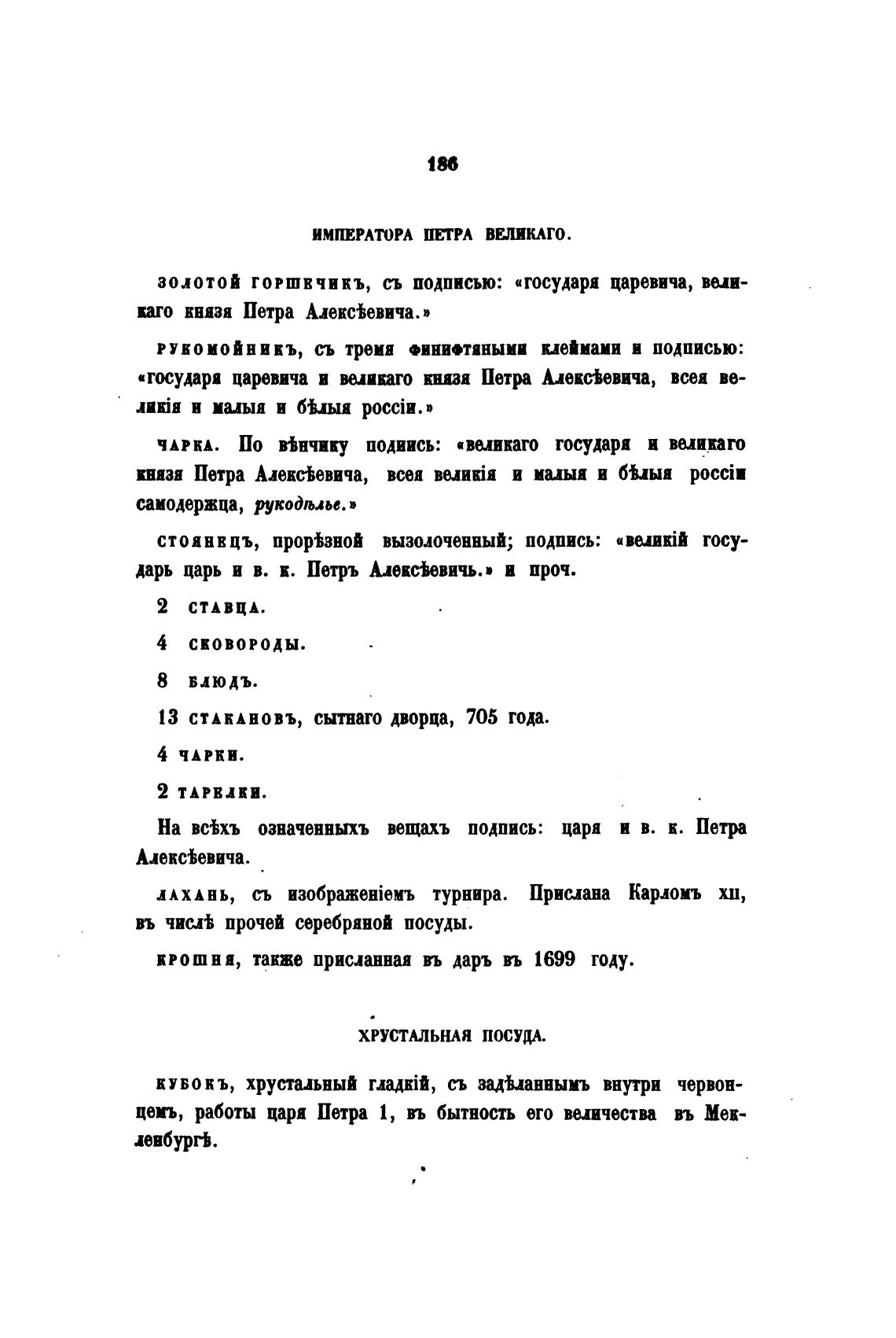 13 СТАКАНОВЪ, сытнаго дворца, 705 года.