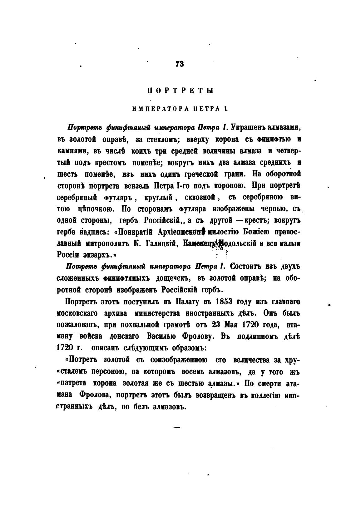 Портреть этоть поступил въ Палату въ 1853 году изъ гдавнаго
