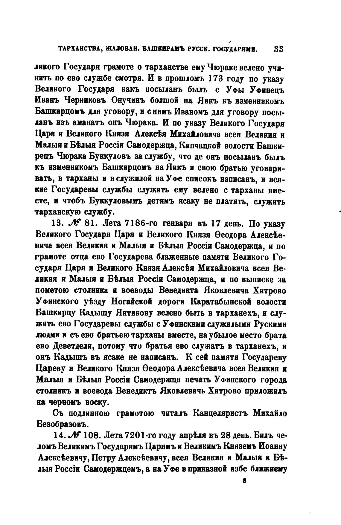 ТАРХАНСТВА, ЖАЛОВАН. БАШКИРАМЪ РУССК. ГОСУДАРЯМИ.